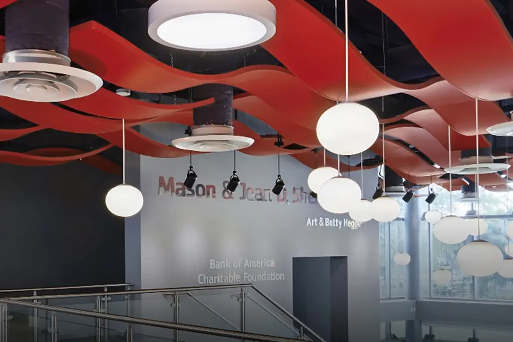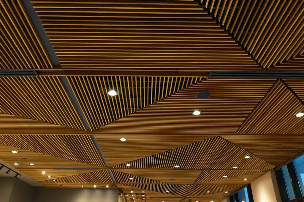 Put your spin on the traditional look of a wood ceiling by selecting WOODWORKS custom wood ceilings in the sizes, shapes, curves, and perforations you need for your design that is uniquely your own.