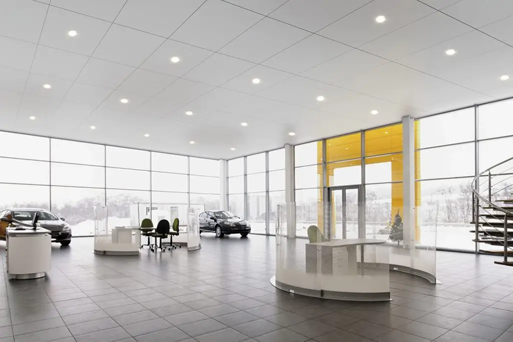 Large-size panels with concealed suspension are 100% accessible.