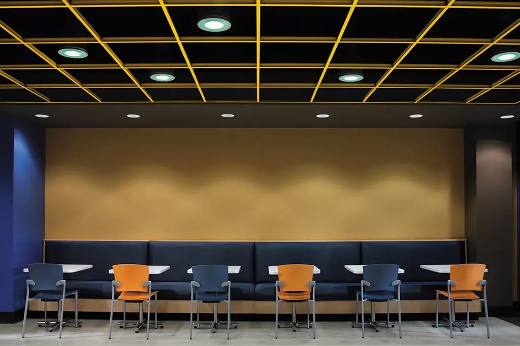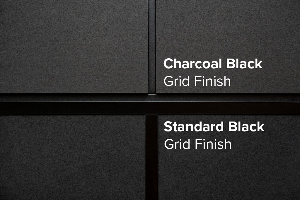 Featuring a powder-coated matte finish, charcoal black minimizes the sheen of standard black ceiling grid, creating a seamless look that adds softness and texture to any space. Coordinates with CALLA and LYRA ceiling panels.
