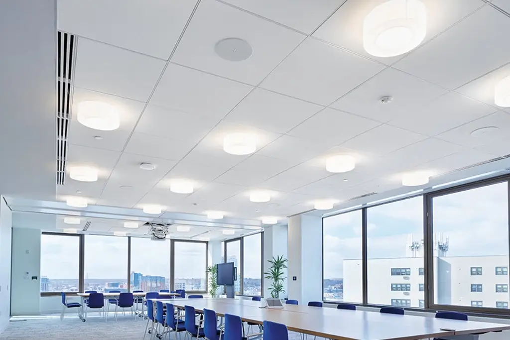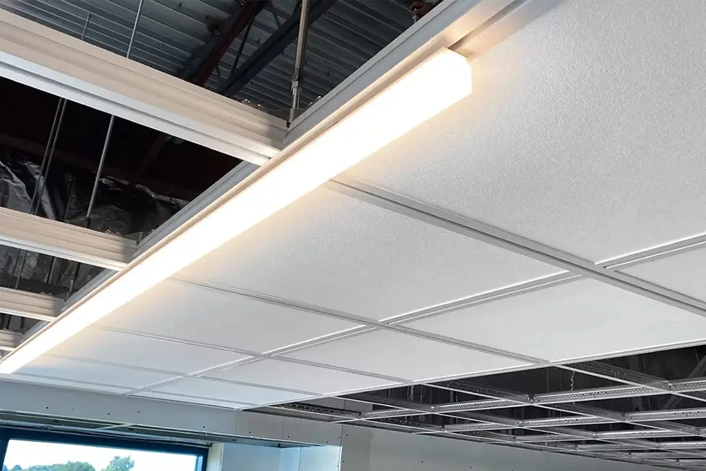 This pre-engineered suspension system seamlessly integrates recessed downlights at the intersection of the ceiling grid — placing light where it has never been before.