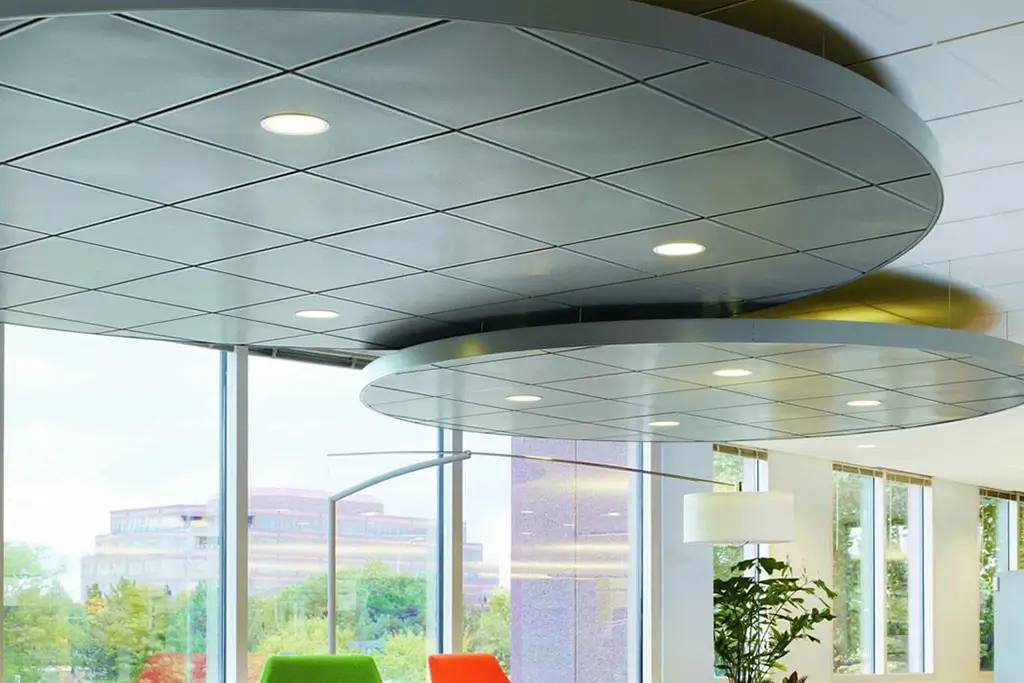 This 9/16-in and 15/16-in profile suspension system is used to define open plenum spaces, or used as decorative accent on clouds and canopies.