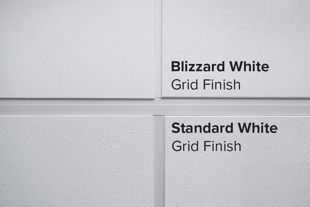 Featuring a powder-coated matte finish, blizzard white minimizes the sheen of standard white ceiling grid, creating a seamless look that adds softness and texture to any space. Coordinates with ULTIMA, OPTIMA, CALLA, LYRA, and MESA SECOND LOOK ceiling panels.