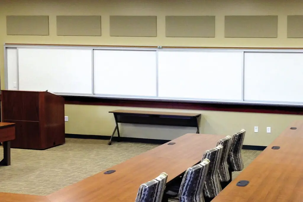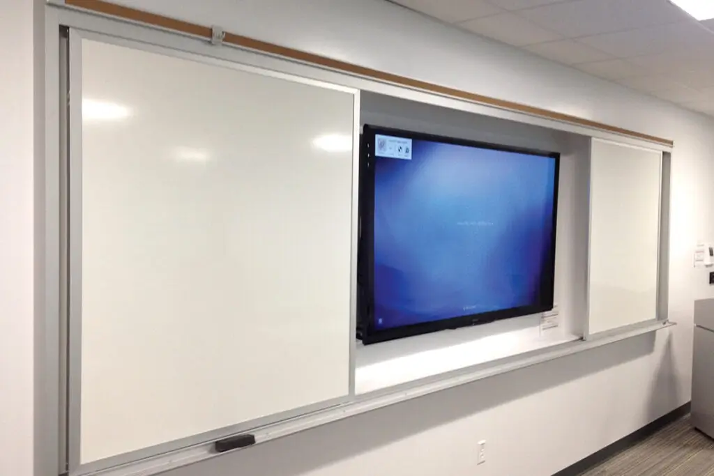 Horizontal sliding walls are ideal for classrooms, limited wall spaces and anywhere more writable wall space is needed for notes, lectures, idea sharing, or training sessions.