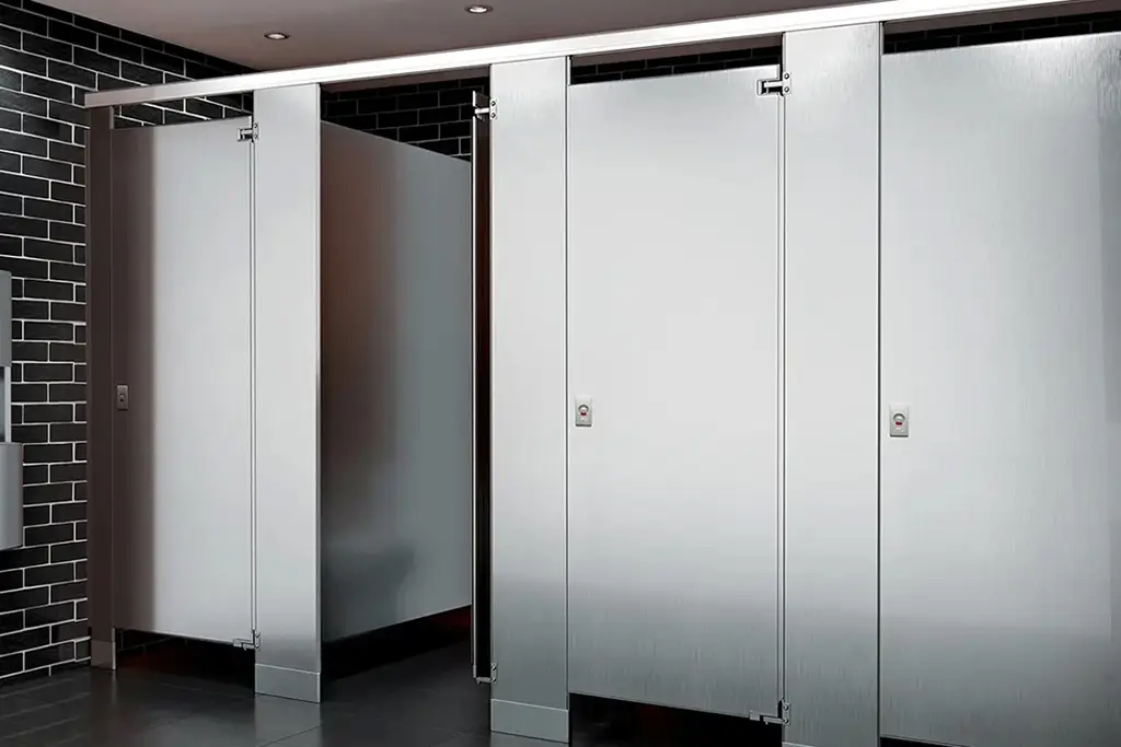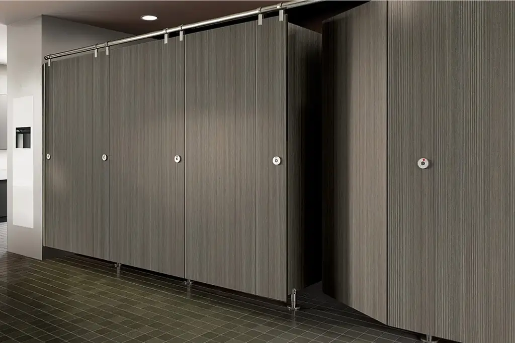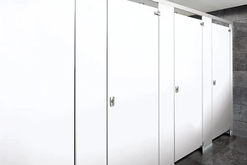 Holds up even under severe moisture conditions from showers, pools and saunas, or when maintenance includes hosing down toilet partitions. Ideal for where vandalism is a problem.