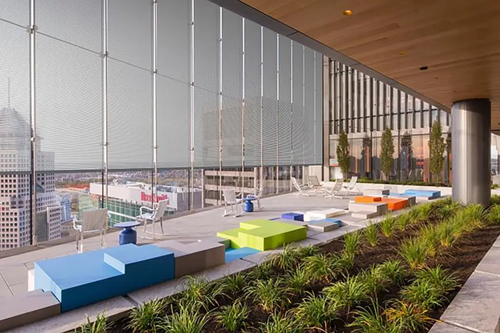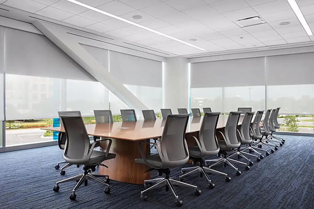 Shades that reduce solar heat gain and glare which has been proven to improve occupant performance and building efficiency.